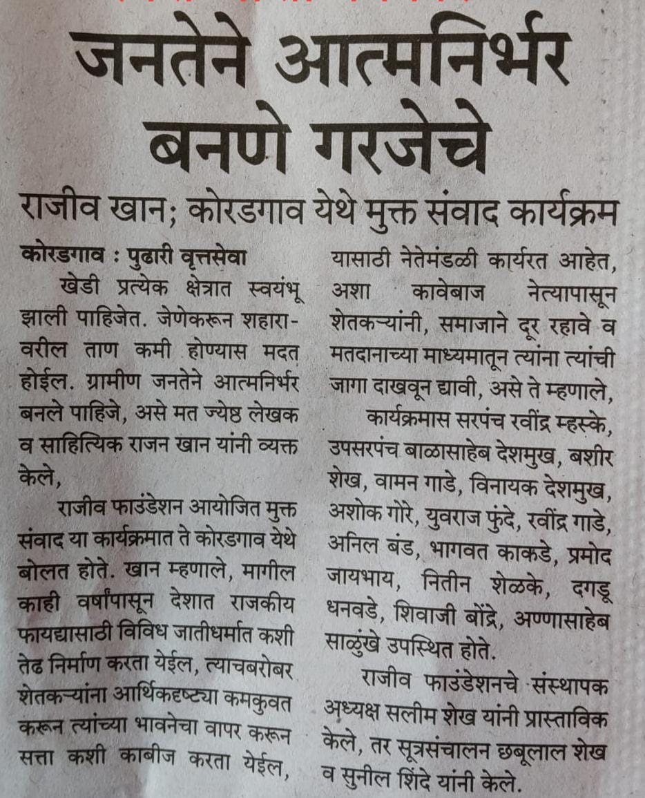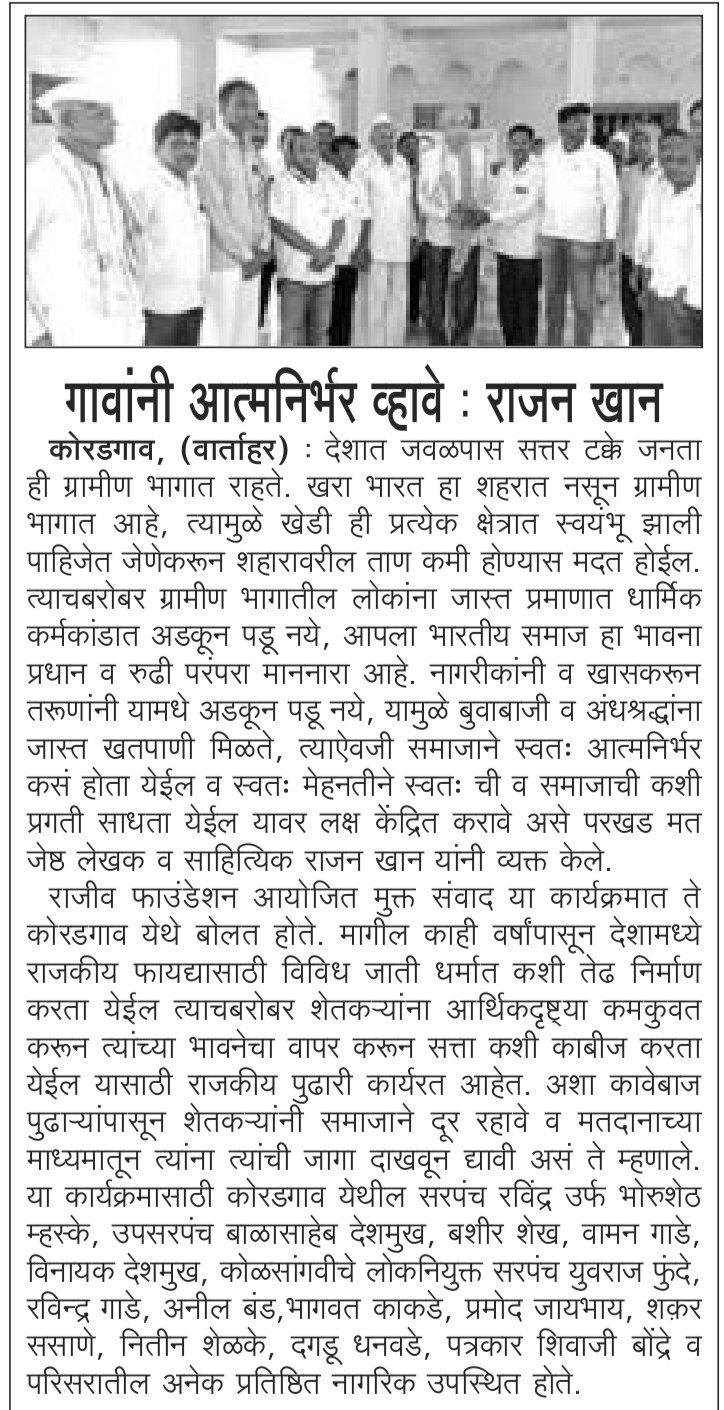 In the presence of renowned writer and Leterary Mr. Rajan Khan Sir At- Koradgaon, Tal- Pathardi, Dist- Ahmednagar