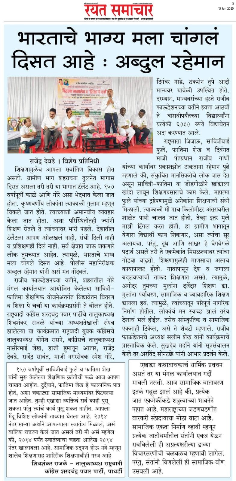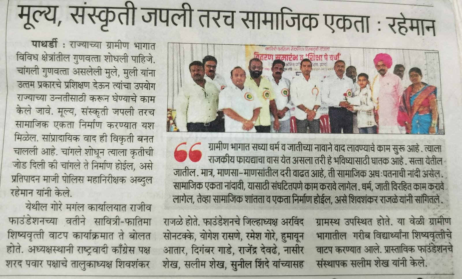 We have distributed 10 scholarships (₹6,000 each) to needy students for their educational purpose for the period of 2024–2025. under Savitri-Fatima Education assistance program.