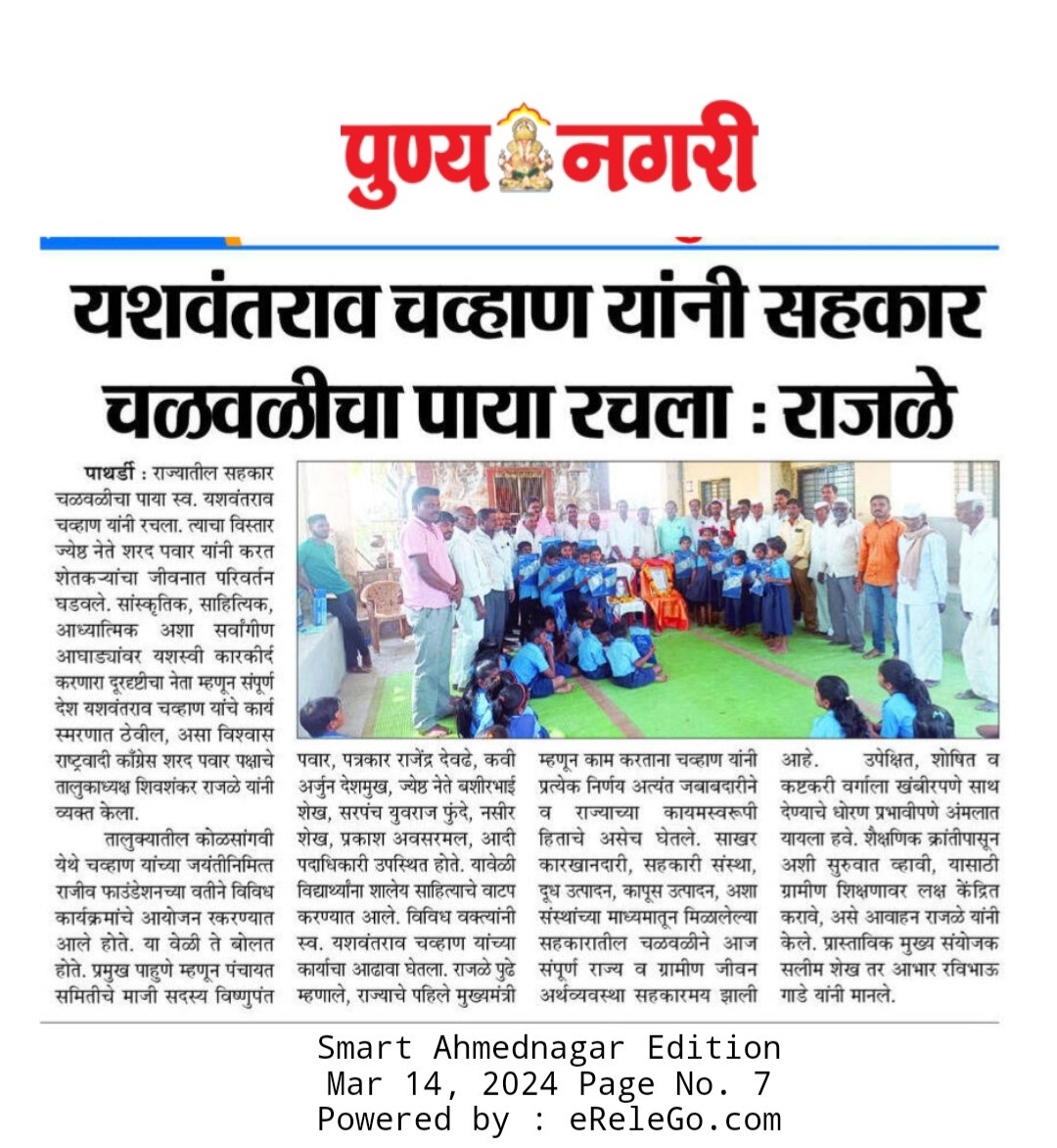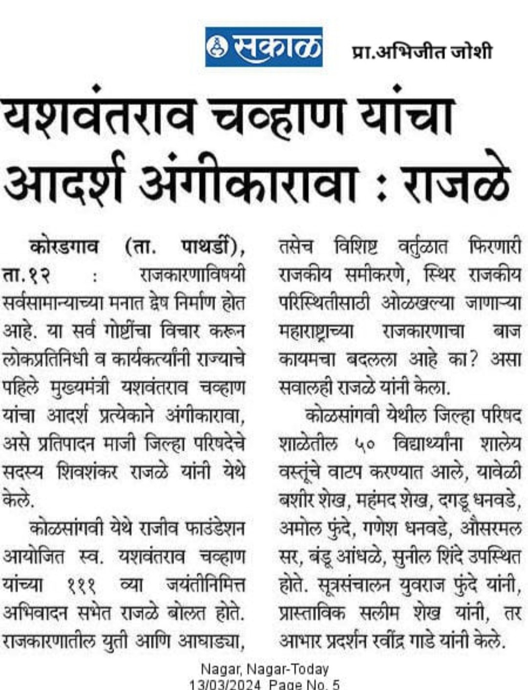 On the occasion of Late Mr. Yashwantrao Chvhan's 111th Birthday at Kolsangvi, Tal- Pathardi, Dist- Ahmednagar